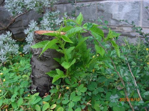 櫻花狀況今年不是很好,斷掉的這棵吉野已經竄出側枝了我想斷這麼低的位置,嫁接點應該在斷枝上,所以長出這些枝應該是山櫻花才對算了,有活總比沒有好,其他的櫻花都開始準備落葉了這棵枝垂落葉最快,從上個月就開始變黃,目前已經快落光,希望它們早點休息準備春天的花季吧!