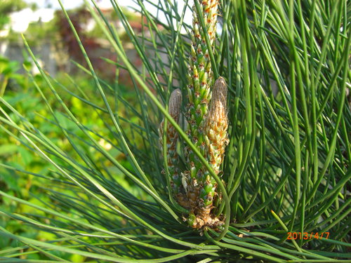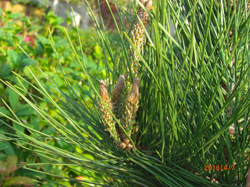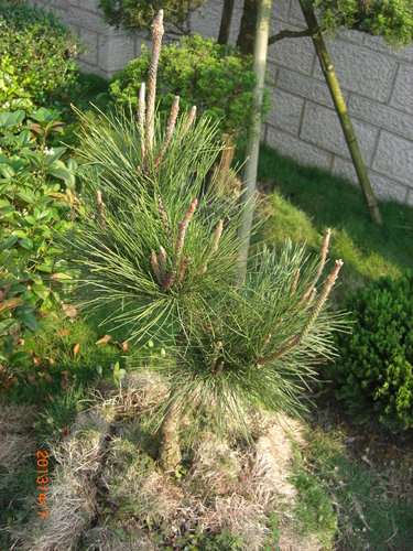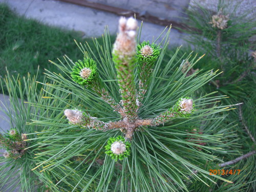 黑松的頂芽優勢特別強健這是車輪枝,要儘早做選芽並摘除,否則會愈來愈腫脹影響樹型. 這棵只做小部份的摘芽,因為是要做成庭園樹的規格,所以抽長枝就繼續飆吧! 所以只摘掉部份的芽點即可.