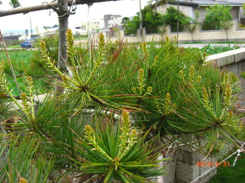 這兩個禮拜的五葉松芽長得蠻多的,照這樣的速度這幾個禮拜再剪個芽很快枝棚就會完成了五葉松需要種植在背風面才種得好,黑松倒是沒這個問題.