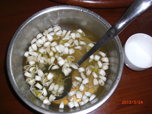 我趕緊拿來洗乾淨沖個熱水,待變溫涼後放入蜂蜜與冰糖,因為蜂蜜不適合高溫加入.