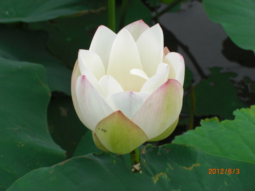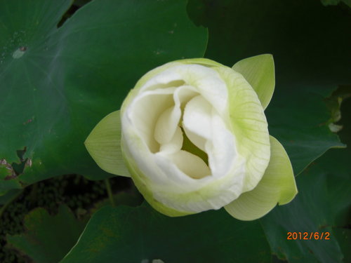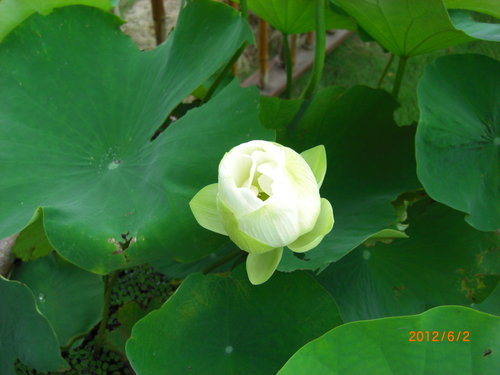 禮拜六養在盆裡的荷花含苞待放,黃白色還蠻清新脫俗的.這次一共有三個花苞,這個花苞是第一朵搶先開的.