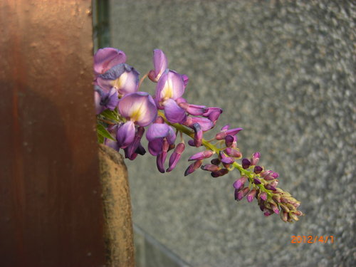 去年底移植的紫藤開花了,雖然開沒幾串,不過我喜歡紫藤整串的花色,真漂亮!希望今年能夠繼續長多分枝爬滿我的花棚架,到時候就有好看的紫藤步道了.
