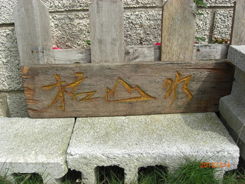 之前就有個想法,要撿一個爛的木頭來刻字.幾個月前,在水溝旁撿到一個要爛不爛的木頭...其實還算硬.只不過邊邊還不夠爛...算了!應該也可啦.隨手用一字起子刻個枯山水字樣,再塗上蠟筆..透出金黃色的字體放到枯山水的造景旁還算OK.